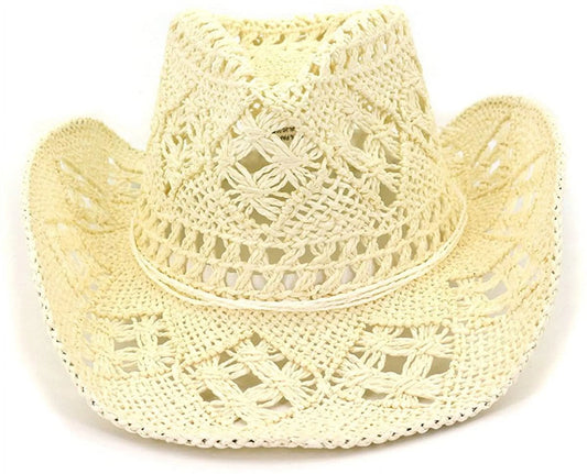 Men Women'S Summer Cowboy Cowgirl Straw Hat Hollow Out Woven Roll up Wide Brim Hat